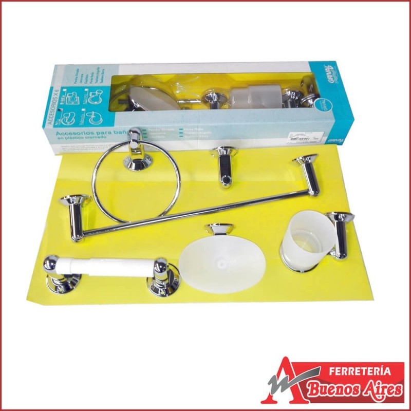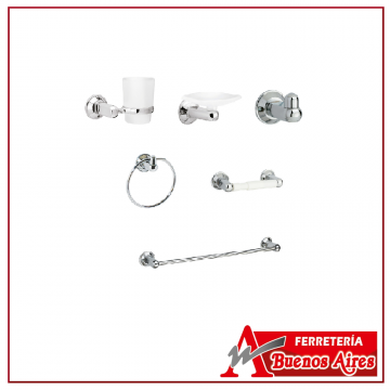 Accesorios Nilo por 6, cuenta con diseño robusto y funcional que le dará un toque único a tu baño, además te garantizará una fácil limpieza, gracias a su diseño que evita la acumulación de impurezas. Este kit incluye Porta rollo, toallero argolla, toallero barra, jabonera, cepillera vaso y percha.