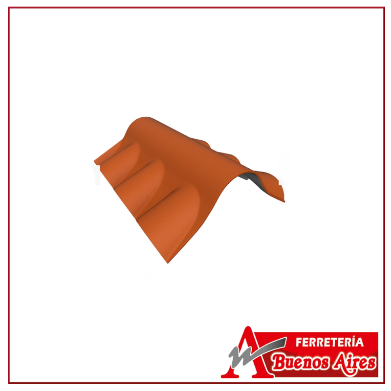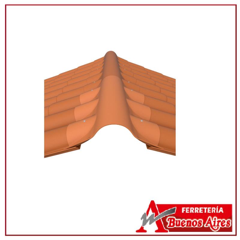 Se instala en la cumbrera de una cubierta a dos o más aguas. Disponible para pendientes de techo de 27% (15°). Debe ser asegurado con 4 tornillos, 2 por cada lado en la segunda y quinta onda. Tener en cuenta la aplicación de un sellante debajo de la cabeza del tornillo, no silicona.