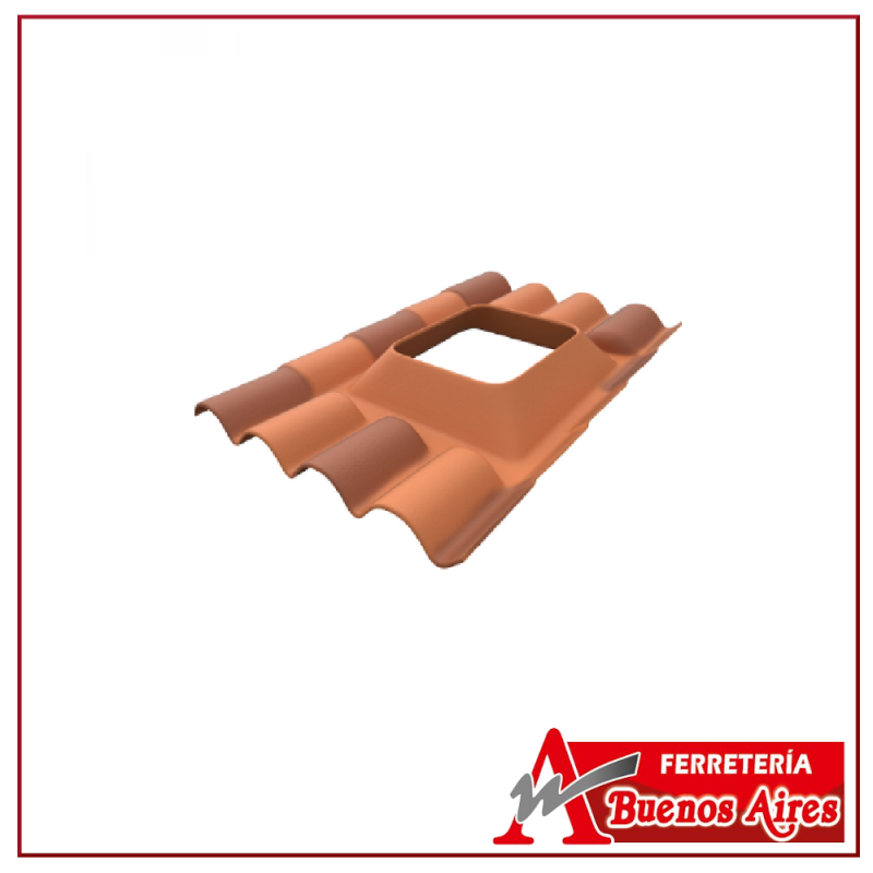 Teja con abertura para dejar el paso de la luz, se cubre con un vidrio asentándolo sobre un tendido de sellante flexible y se asegura doblando hacia arriba los ganchos para su fijación.