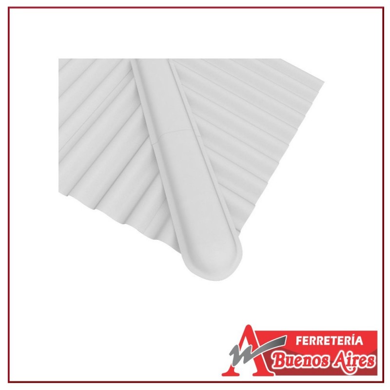 Se instala en la cumbrera de una cubierta a dos o más aguas. Disponible para pendientes de techo de 27% (15°) y de 36% (20°) y 47% (25°) sobre pedido. Debe ser asegurado con 4 tornillos, 2 por cada lado en la segunda y quinta onda. Tener en cuenta la aplicación de un sellante debajo de la cabeza del tornillo, no silicona.